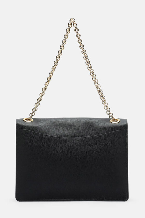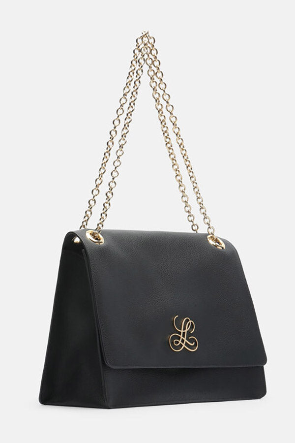 Shoulder bag with gold chain. Combining capacity and lightness, it is perfect for any occasion. The chain allows it to be worn across the body, with timeless elegance. Metal snap button closure, lined interior with central compartment. Gold metal “LS” logo on the front. The name celebrates the brand's birth date, 1928. Made in Italy.