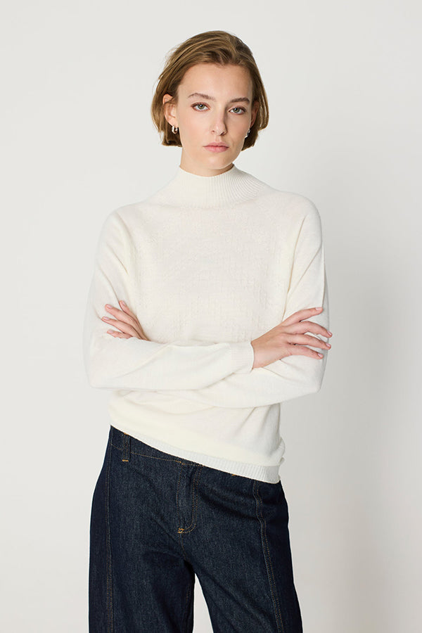 Perkins collar sweater with an elegant textured detail on the front that adds a sophisticated touch. Made in a soft wool, its design combines comfort and style, ideal for a modern and warm look in any occasion.
