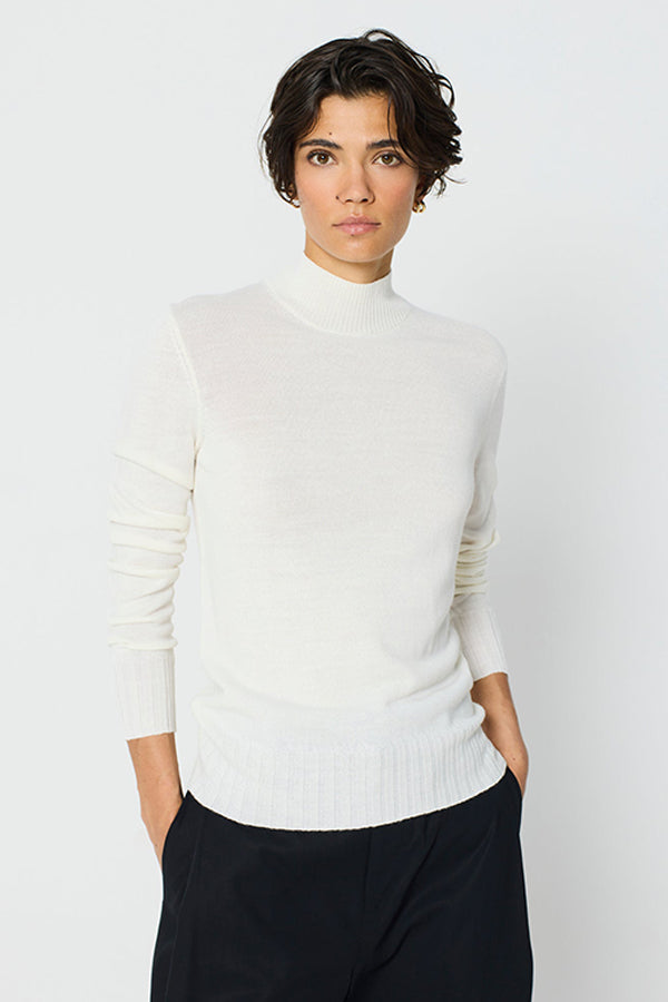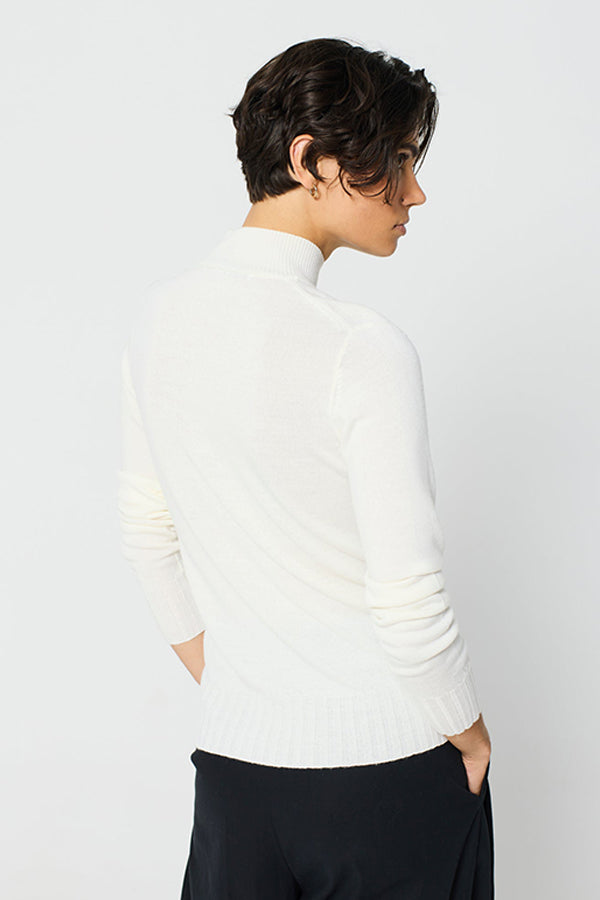ECRU WIDE RIBBING HIGH NECK SWEATER