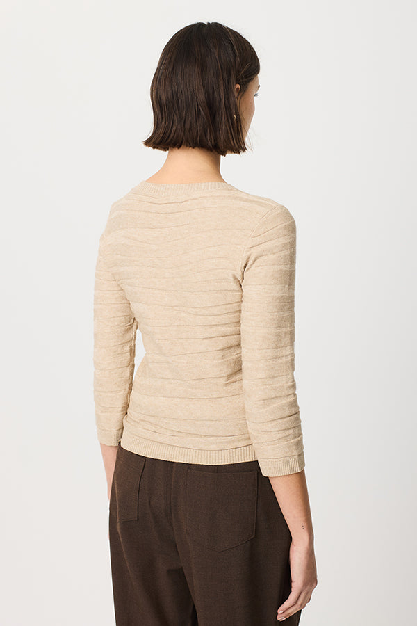 KNITTED TEXTURE 3/4 SLEEVE SWEATER