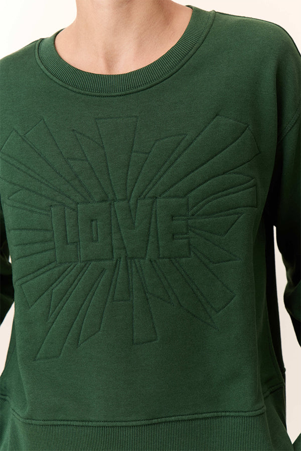 The sweatshirt Sorbet Love Revisit Leon & Harper's pop spirit with its "love" motif in relief, signature of a creative approach to the casual. Its flexible cut, the classic round neck, and the coast edges on the wrists and the waist guarantee comfort and support. A striking piece that energizes your jeans and wide pants.