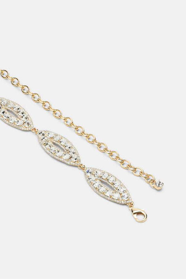 Jewelled chain belt embellished with baguette crystals framed by micro-crystals, finished with a lobster clasp. Made in Italy.