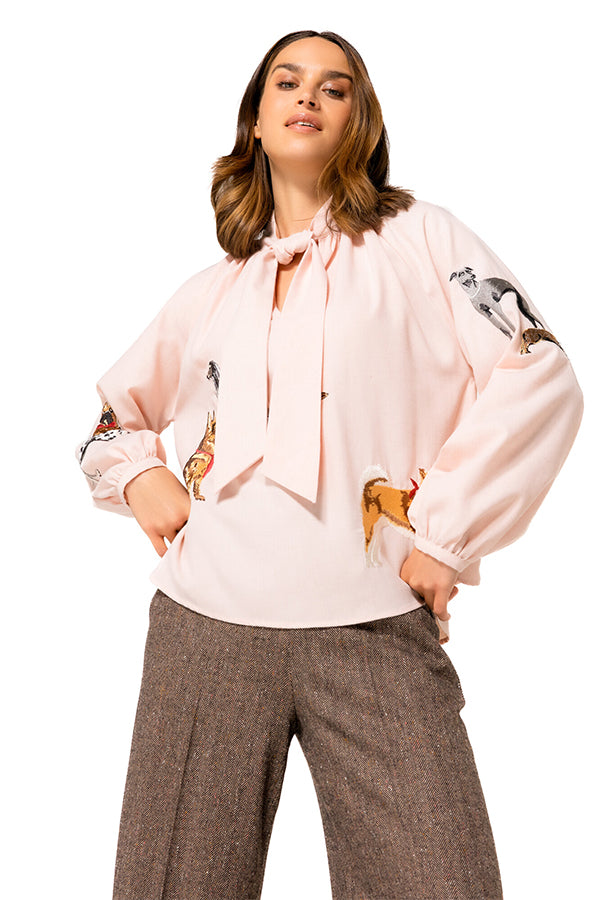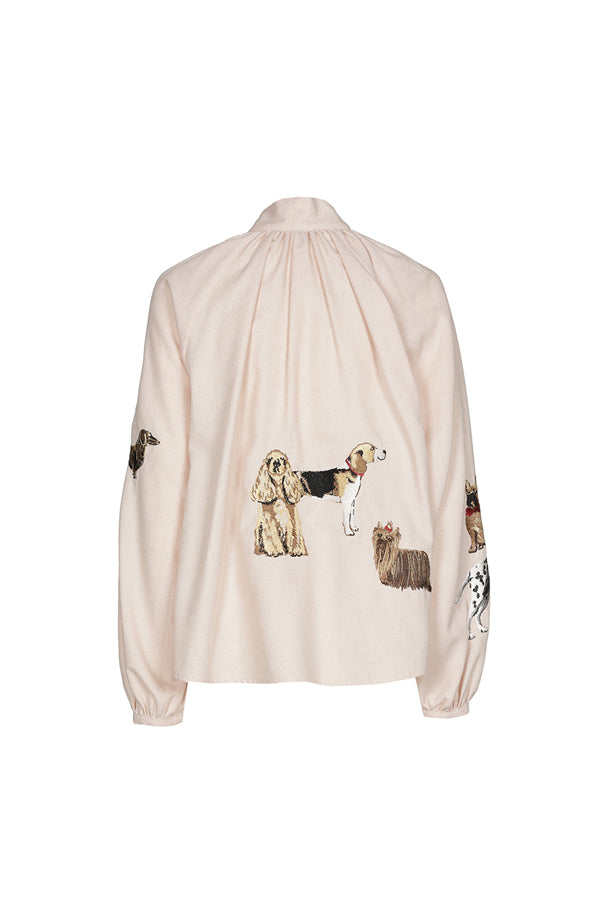 Dog Embroidery Straight-Fitting Blouse