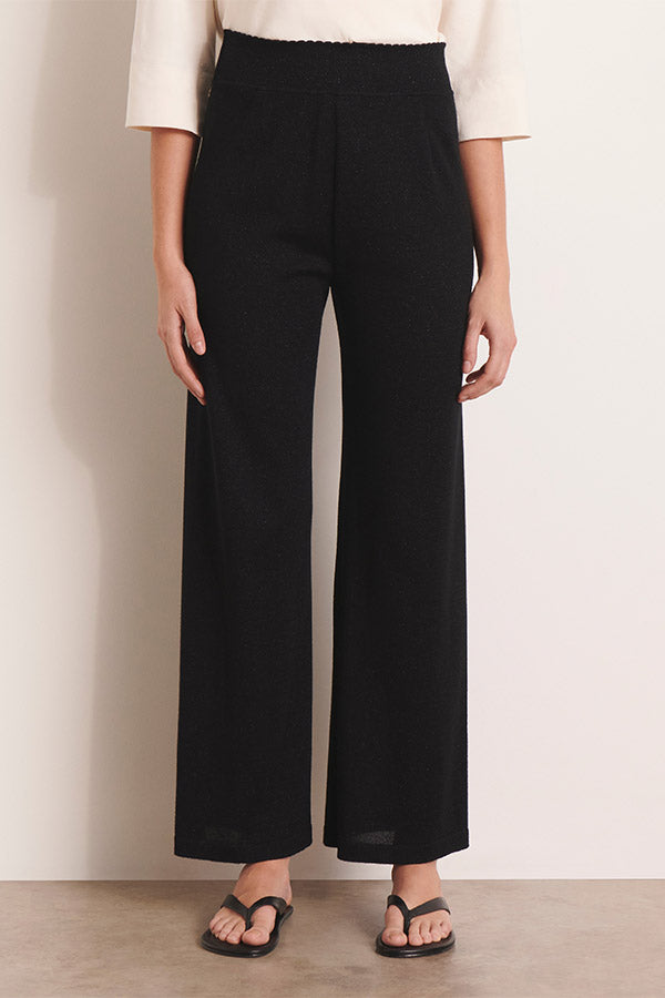 YELLOW13 BLACK WIDE-LEG IRIDESCENT JERSEY KNIT TROUSERS