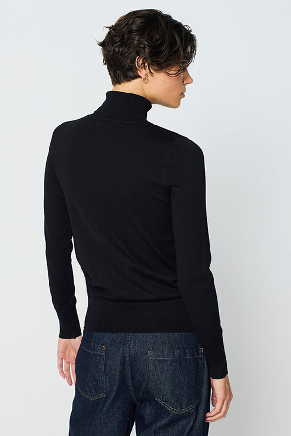 BLACK WIDE RIB DETAILS TURTLENECK SWEATER