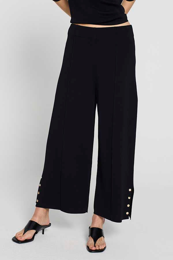The Celina trousers feature a straight cut and high waist, standing out for their elegant and timeless silhouette. The side slits add movement and a modern touch, while the gold button closure detail adds a sophisticated and luminous accent.