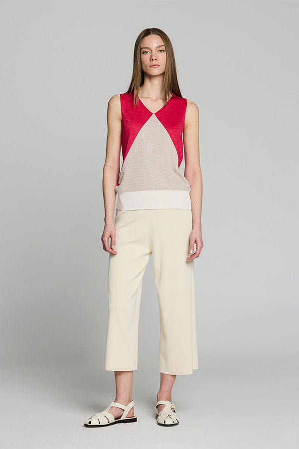 Lightweight, versatile and with character. The Azura top, made from knit fabric with thin straps and a V-neckline, features an elegant geometric design. Its flowing silhouette and soft texture make it ideal for warm days.