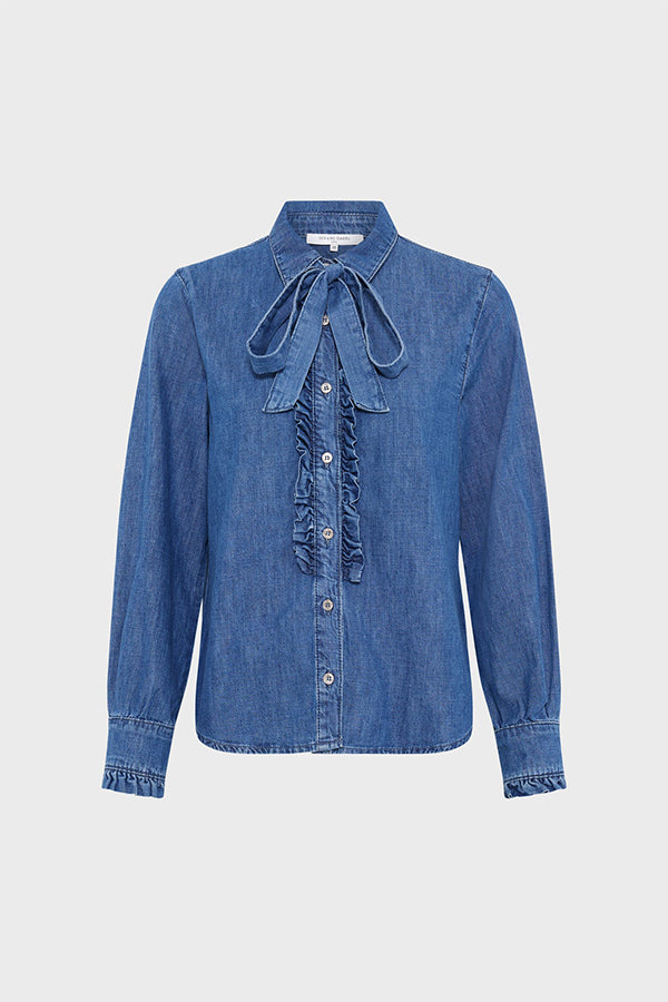 - Ruffles along the button placket