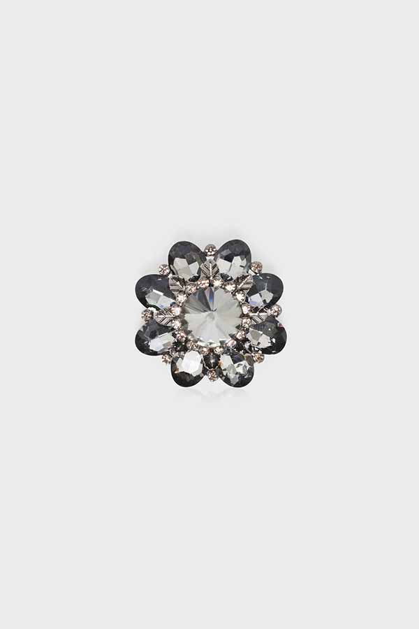 FLORA ANTHRACITE RHINESTONE AND STONE BROOCH