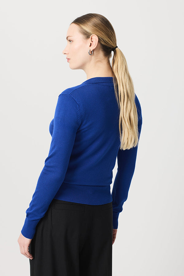 This basic sweater with polo style collar stands out for its softness, providing a feeling of comfort and warmth with every wear. Its simple and elegant design makes it an essential garment, perfect to keep you warm and stylish in any occasion.