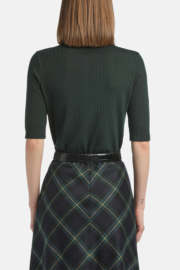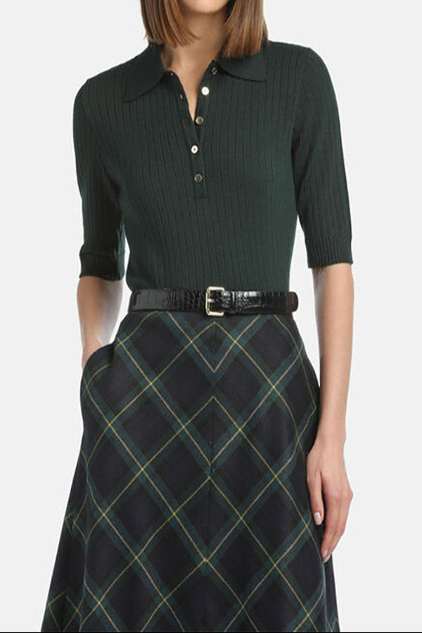 Wool-blend polo shirt in flat-ribbed knit. Smooth collar, short sleeves, tone-on-tone buttons. Regular fit