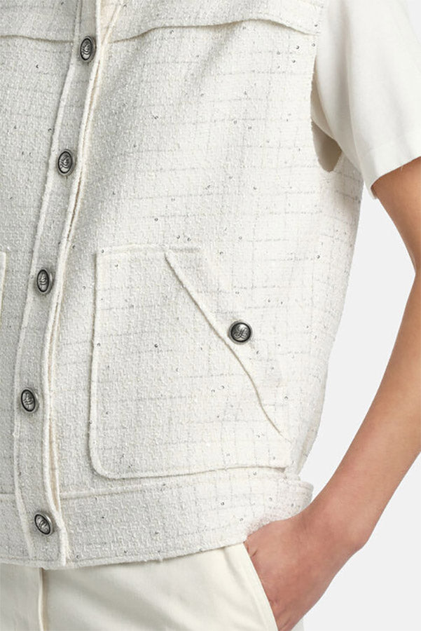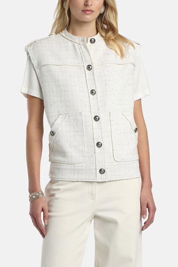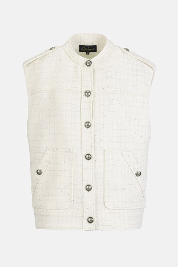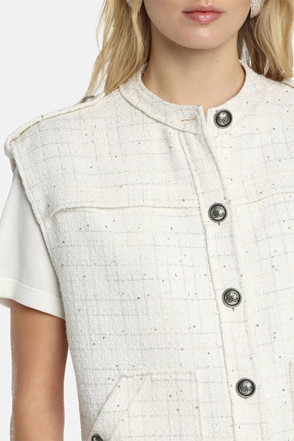 Bon-ton bouclé vest with a striped pattern enhanced with lurex threads, a round neckline, shoulder tabs with buttons, adjustable hem tabs, and silver-tone "LS" heraldic buttons. Regular fit.