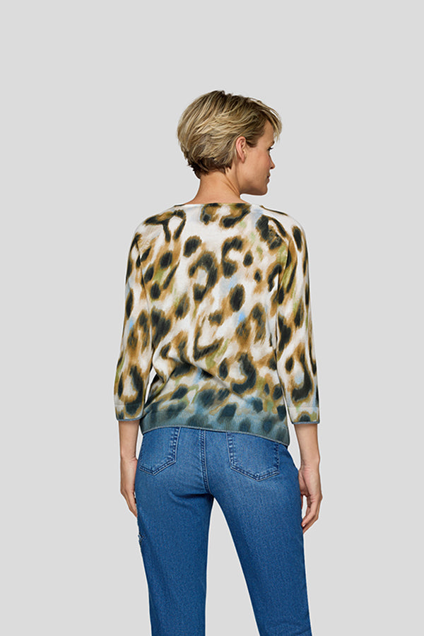 LEOPARD PRINT BLUE GRADIENT LONG SLEEVE SHIRT