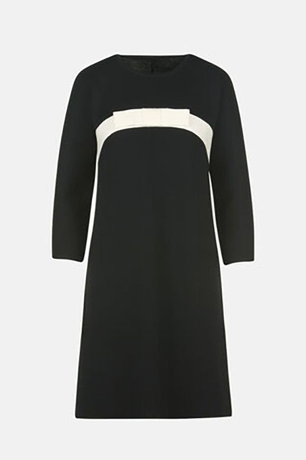 Tube dress in pure virgin wool knit with a fabric-stitch weave. Features 3/4 sleeves, a contrasting flat bow detail on the chest, and a round neckline. Above-the-knee length. Regular fit.