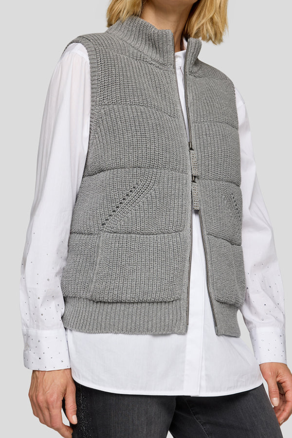 GREEN HIGH COLLAR QUILTED SLEEVELESS VEST
