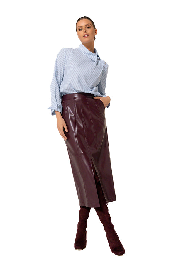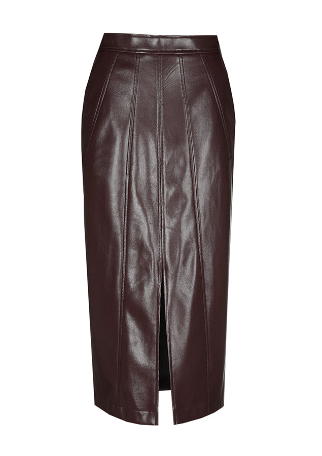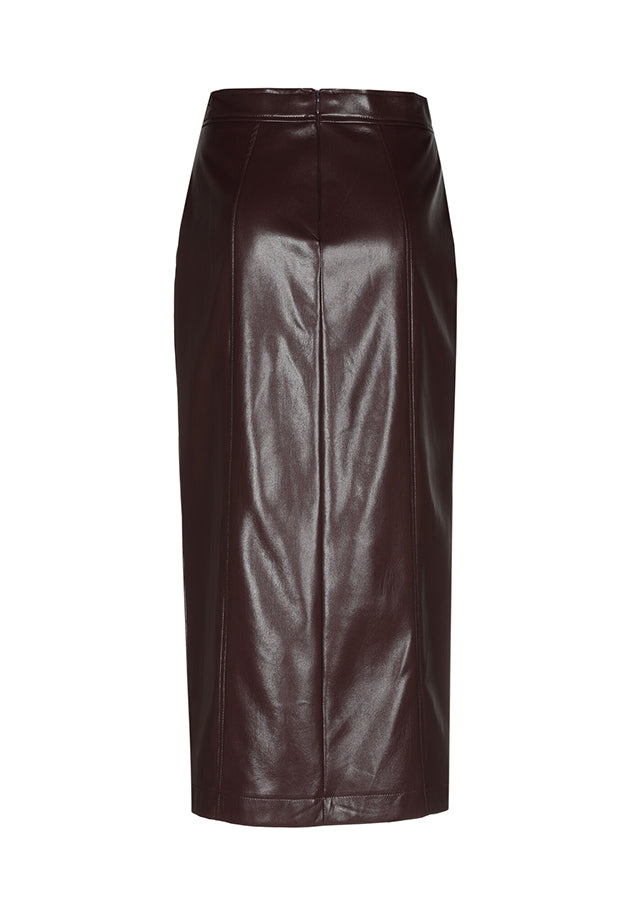 Brown Vegan Leather Fitted Comfortable Midi Skirt
