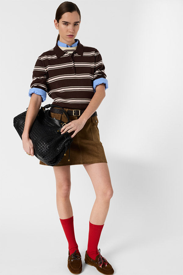 With its short sleeves and its pattern of stripes and alternating stripes