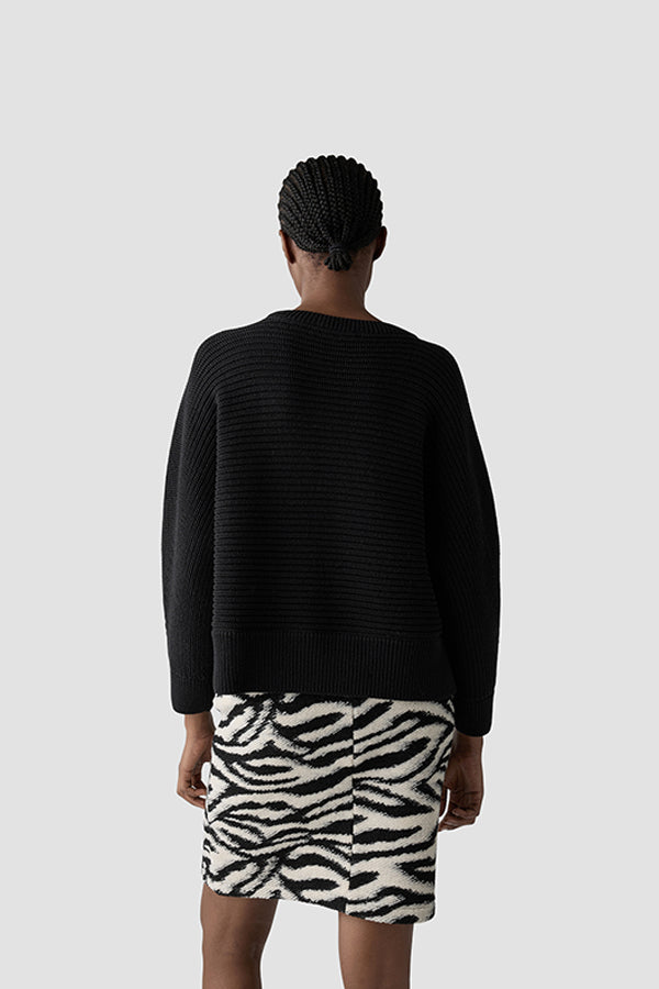 WHITE ZIGZAG PATTERN BLACK SWEATER